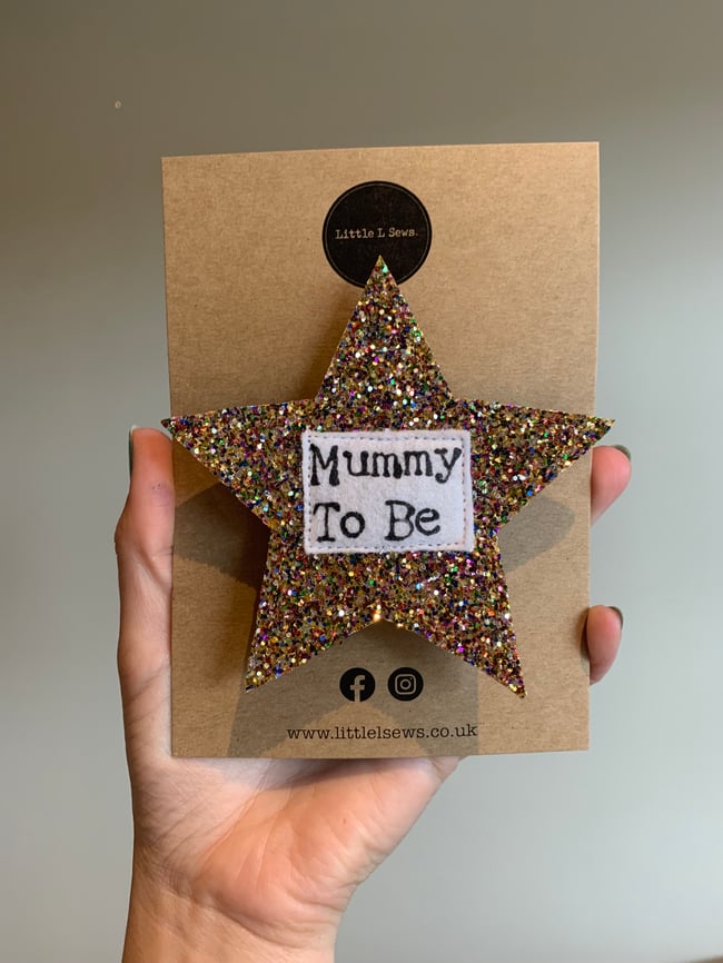 Let me know in the notes section at checkout if you'd like a different glitter or different 'Mum' name on the badge.
